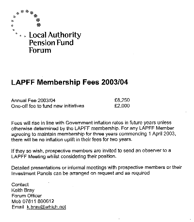 PENSION FUND COMMITTEE – 21 NOVEMBER 2003