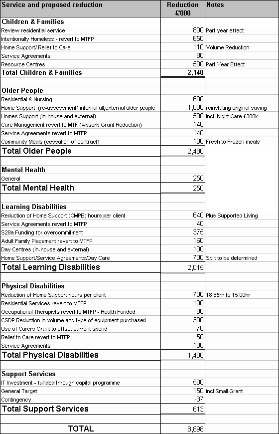 Summary of Reductions to Keep Within Available Resources